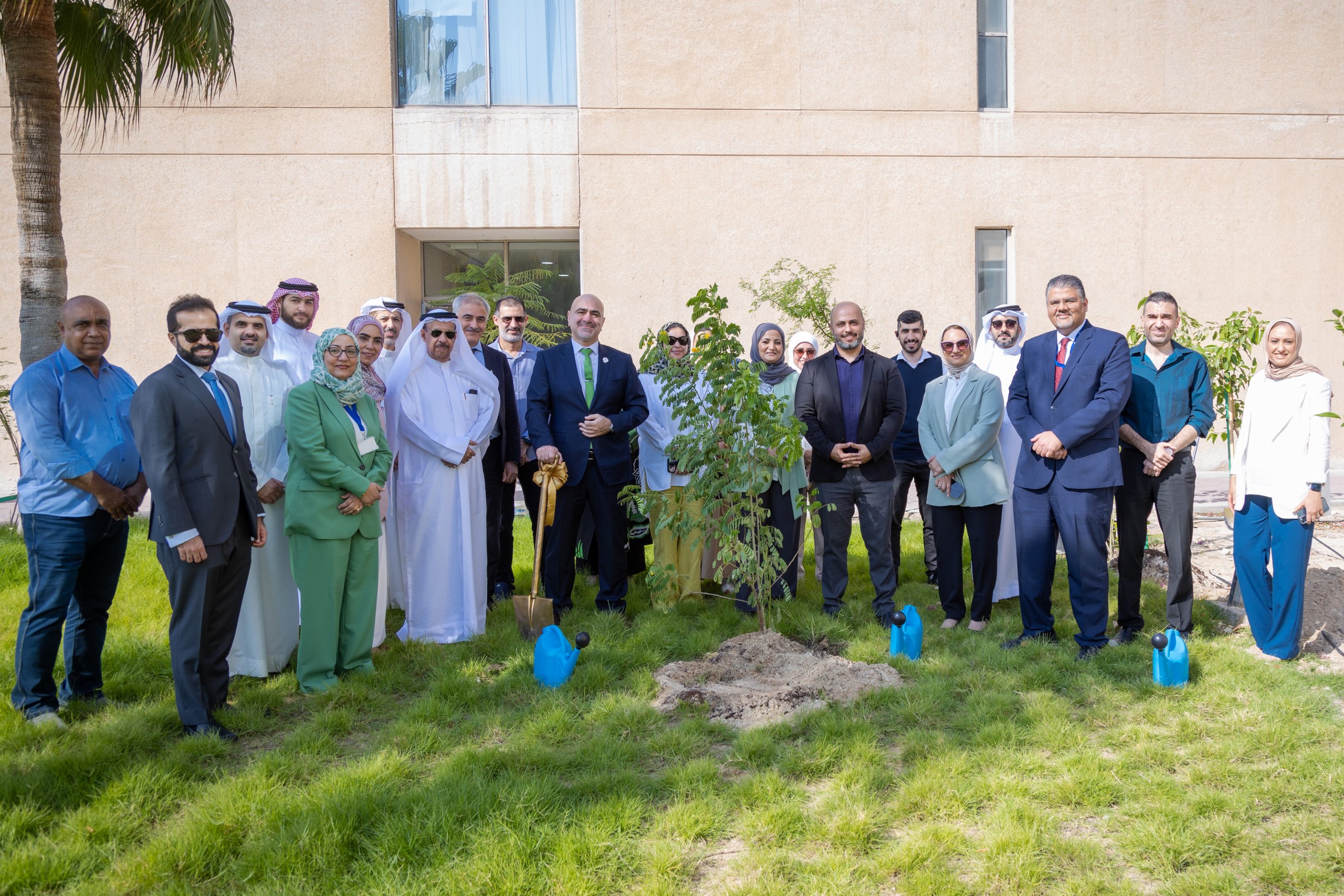 In support of Bahrain’s carbon neutrality initiatives and National Tree Week, the University of Bahrain President, Dr. Fuad Mohammed Al Ansari, alongside university officials, led a tree-planting event on campus. This public initiative supports the national afforestation plan, which aims to plant 3.6 million trees by 2035, aligning with the Kingdom’s climate commitments. The activity was open for community participation.
