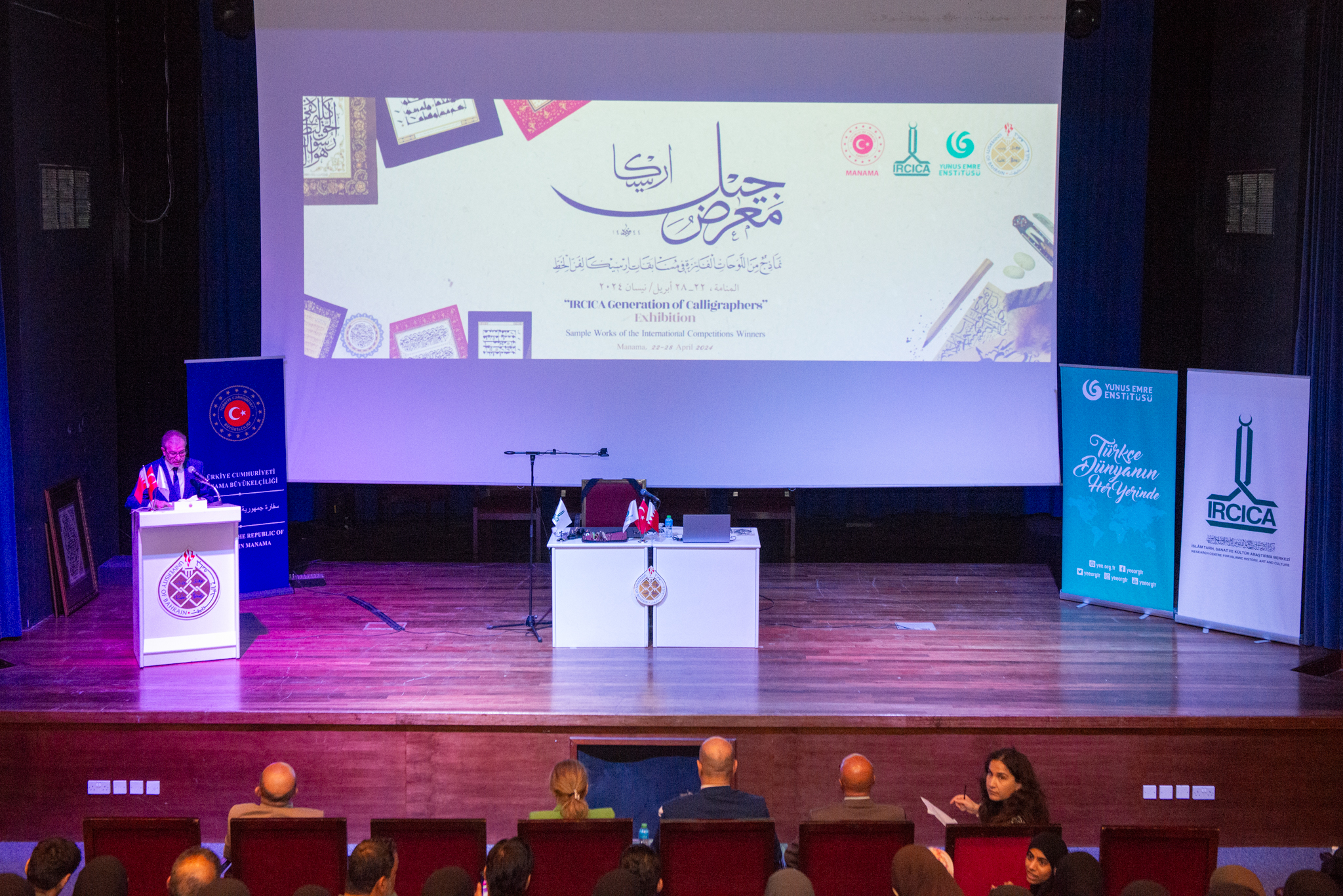 The University of Bahrain, in cooperation with the Yunus Emre Institute, organized a public Calligraphy Art Exhibition featuring the works of Mr. Said Kasimoğlu, Head of the Arts and Handicrafts Department at IRCICA. The exhibition opened on 22 April 2024 and remained accessible to visitors until 28 April 2024, providing the university community and the public with free access to a cultural and educational event.